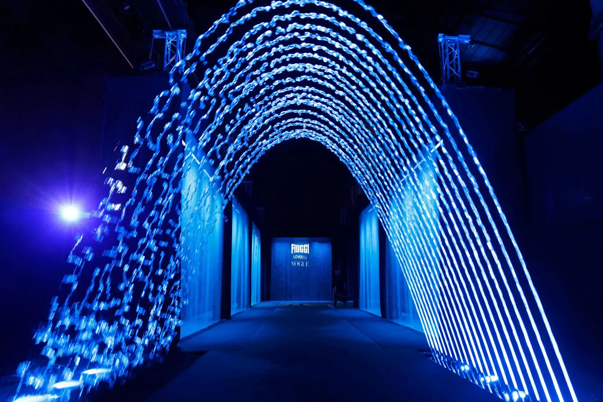 The venue was transformed into a sensory celebration of Fiuggi’s rebirth, with large-scale video projections, light displays, and cascading water features.