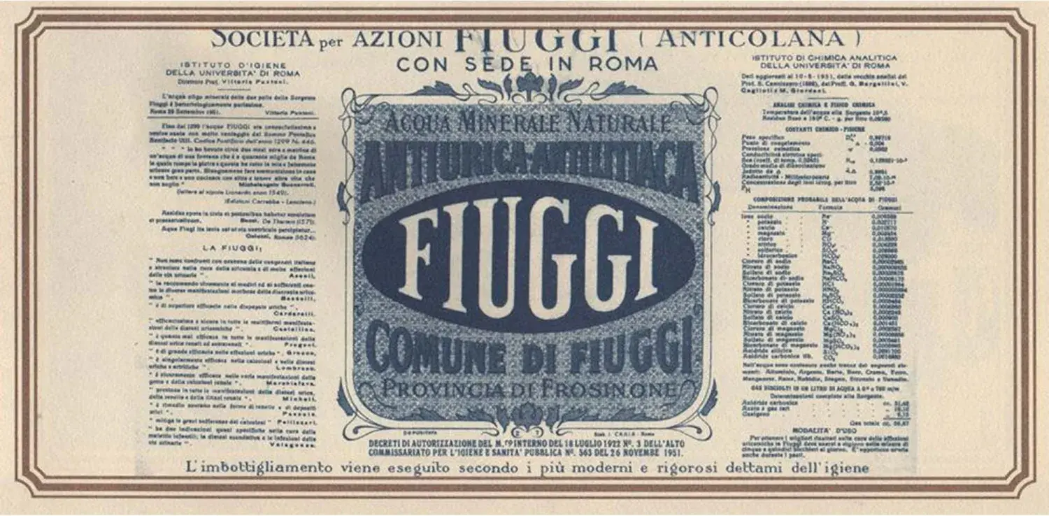 Le prime testimonianze su Acqua Fiuggi risalgono a quasi mille anni fa, quando già se ne riconoscevano le virtù benefiche. Dai papi a Michelangelo, nel corso dei secoli quest’acqua è stata associata a uno stile di vita equilibrato e rigenerante. Simbolo di lusso e unicità, divenne nell’Ottocento e nel Novecento un’icona del benessere italiano nel mondo.